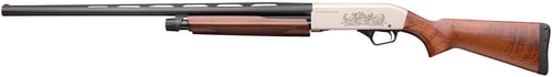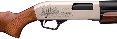 Pick up the Winchester Super X Pump (SXP) shotgun and experience the light weight, centered balance and instant pointability firsthand. The Super X design provides you with the fastest follow-up shots. No other pump offers the feeling of an inertia-assisted slide-action that can deliver three shots in a half second. Whether its super-speed clays or fast-flushing upland game, keep up with shootings fastest action with the Super X Pump, the perfect choice for pump shotgun lovers. This Upland Field model features a matte nickel receiver finish, grade II/III satin Turkish walnut stock, and matte blued barrel.| Action | Pump |