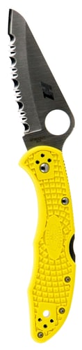Spyderco C88SYL2 Salt 2 3" Folding Clip Point Serrated H1 Steel Blade Yellow Bi-Directional Texturing FRN Handle Includes Pocket Clip