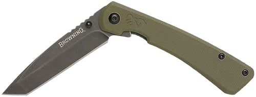 Browning 3220507 Branded Rock EDC 3" Folding Tanto Plain Black Stonewashed 7Cr17MoV SS Blade OD Green, G10 Handle